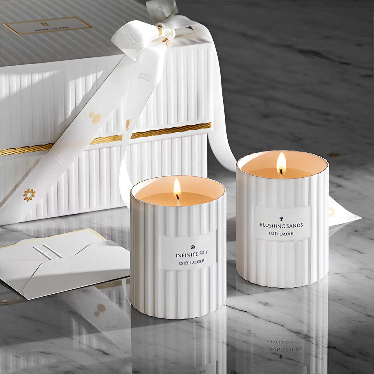 Elevate your space with the Estee Lauder Infinite Sky Candle, featuring spicy Sichuan Pepper, sweet Madagascar Vanilla, and rich Leatherwood.