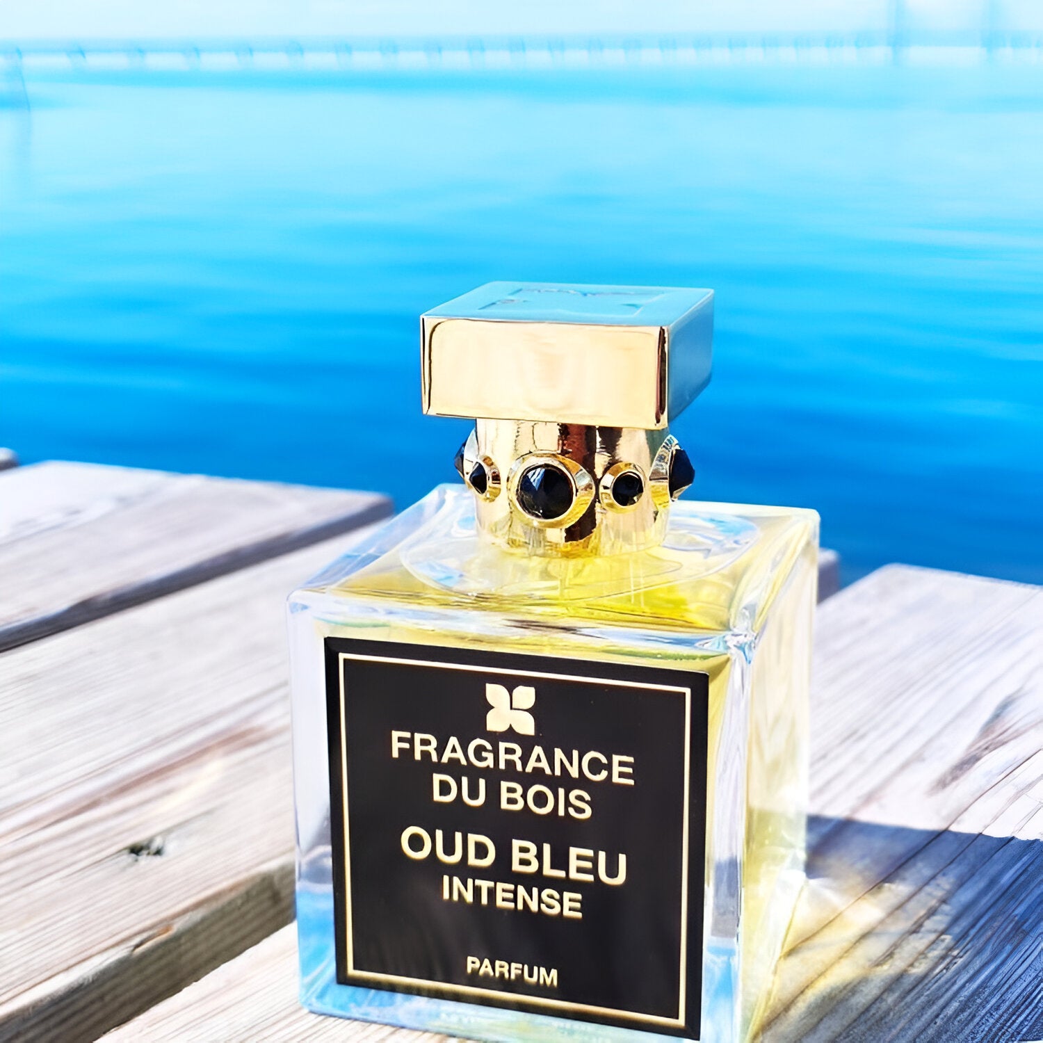 Discover Oud Bleu Intense: a unisex, vegan, marine-inspired perfume with exotic resins and organic Oud.