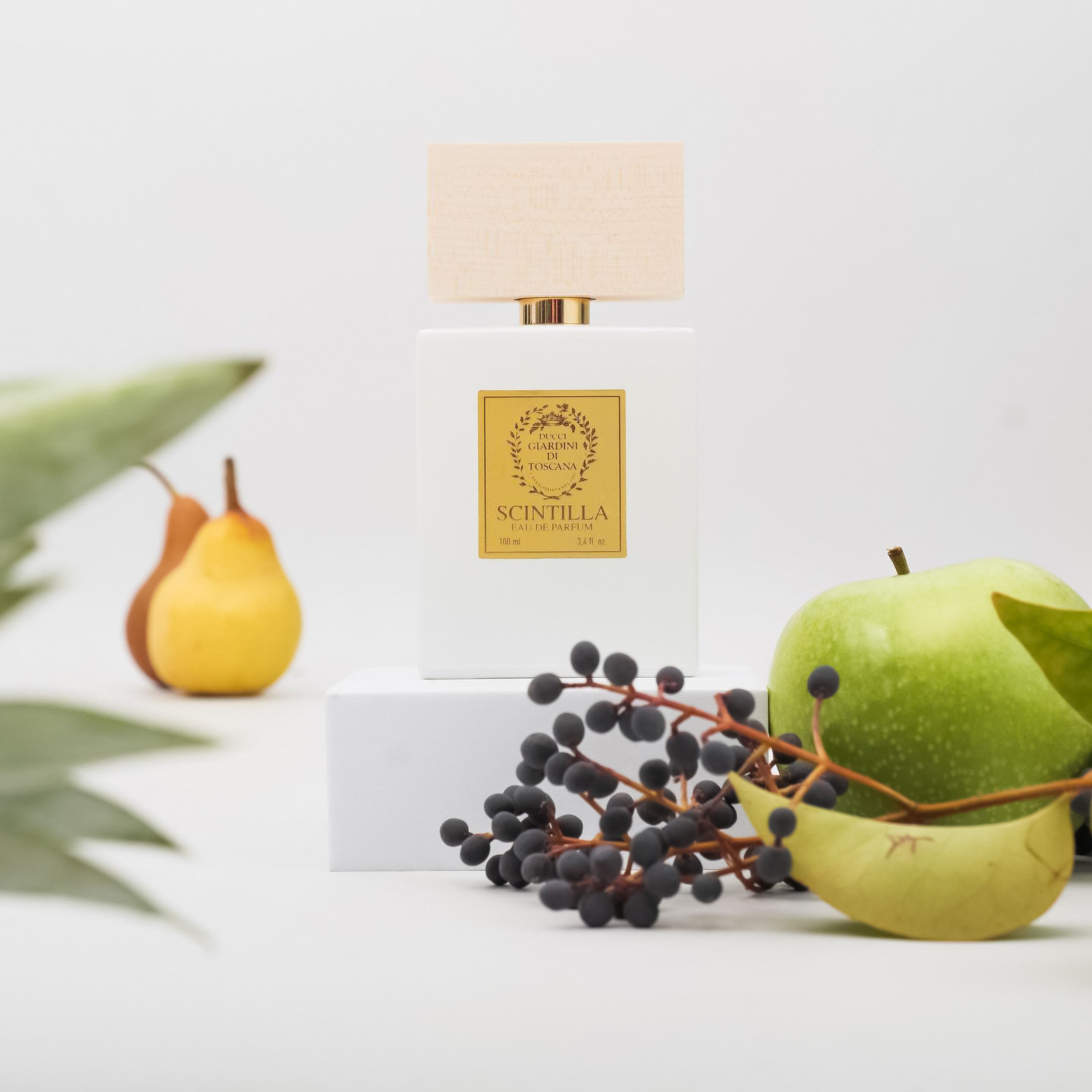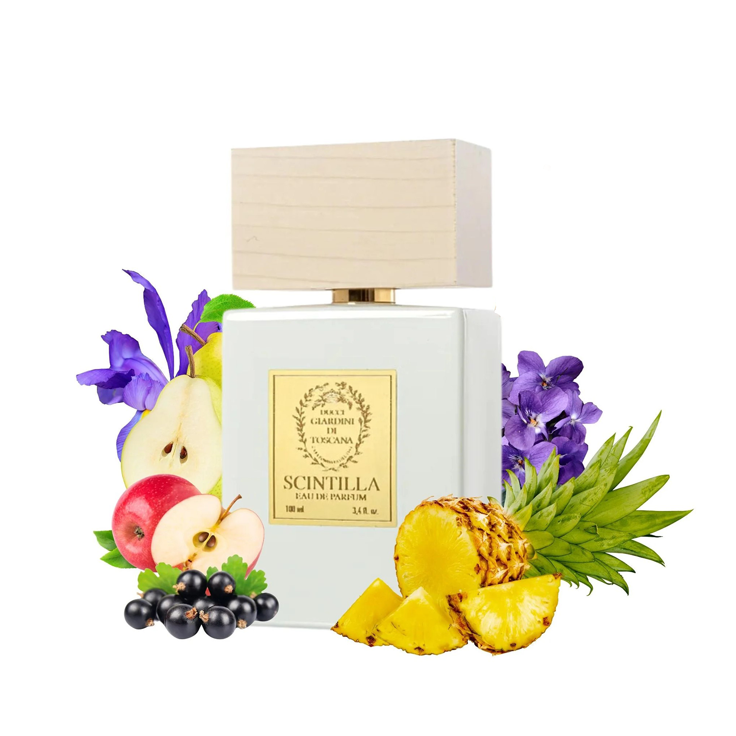 This unique blend begins with a vibrant burst of fruity notes, transitioning into a magnetic heart that enchants the senses. Experience the harmony of nature and art with every spray of Scintilla.