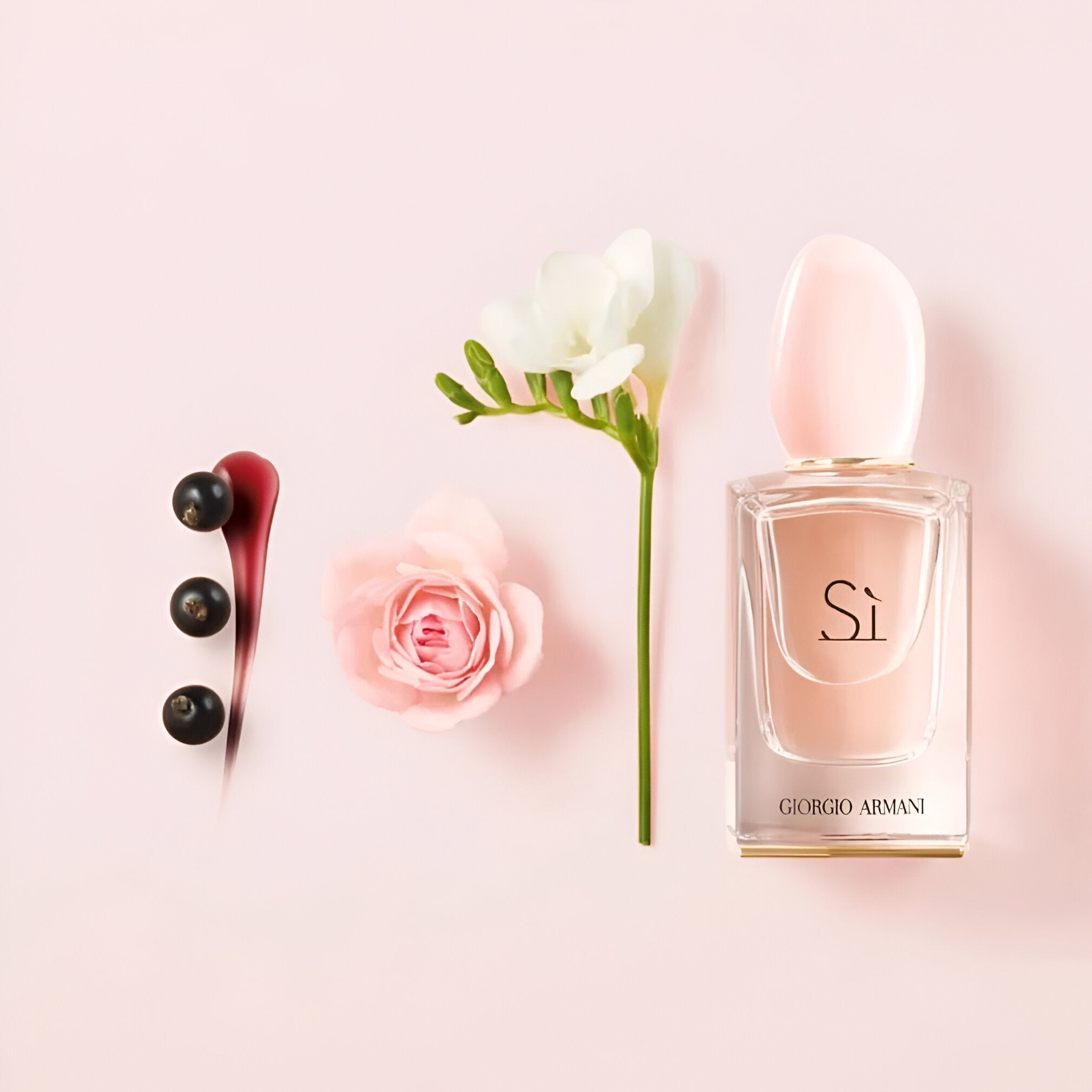 Giorgio Armani Si EDT smells of blackcurrant nectar, rose, airy florals, and musky blond wood. It's a chic, enchanting summer fragrance.