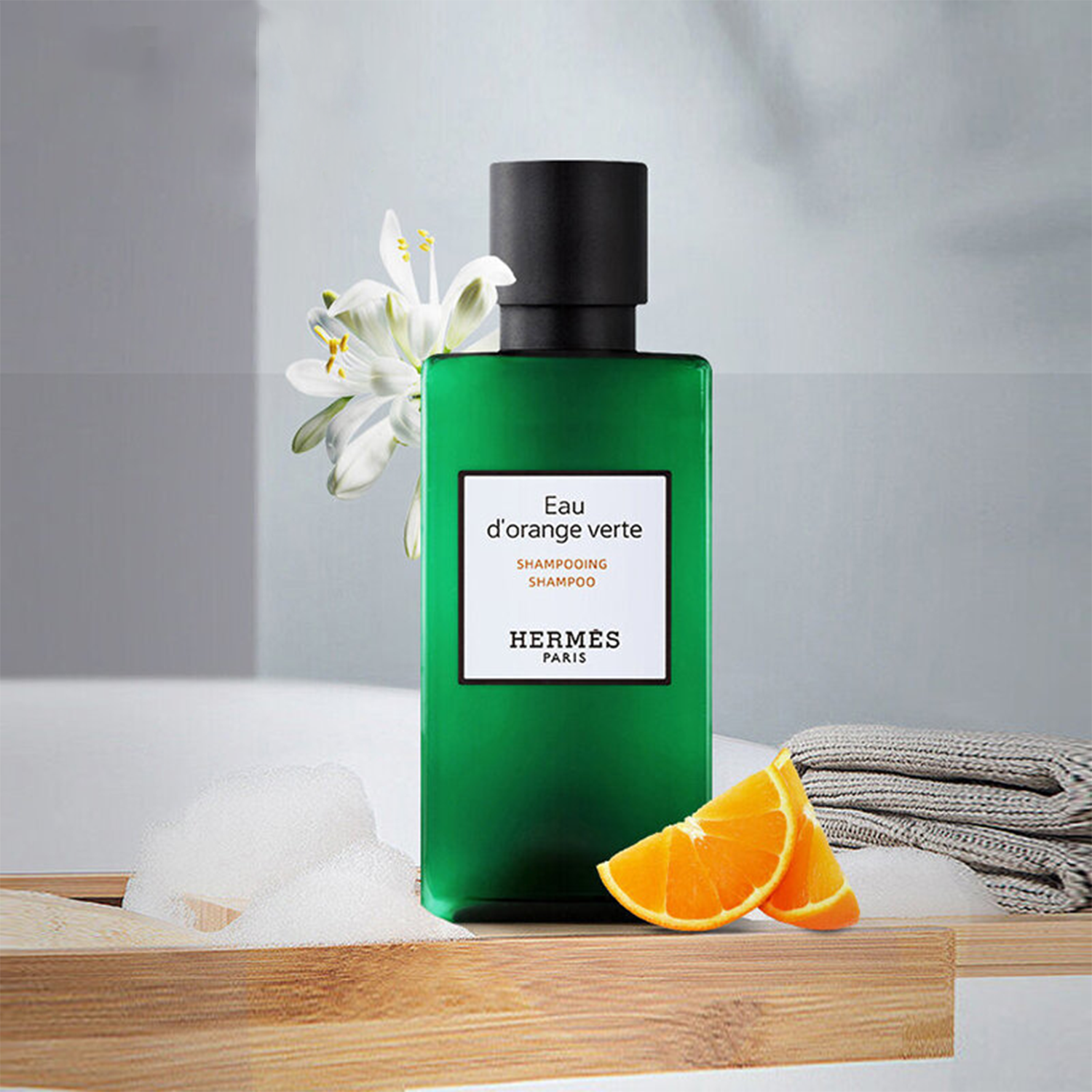 Experience the invigorating essence of Hermes Eau D'Orange Verte Shampoo, capturing citrusy freshness and luxury.
