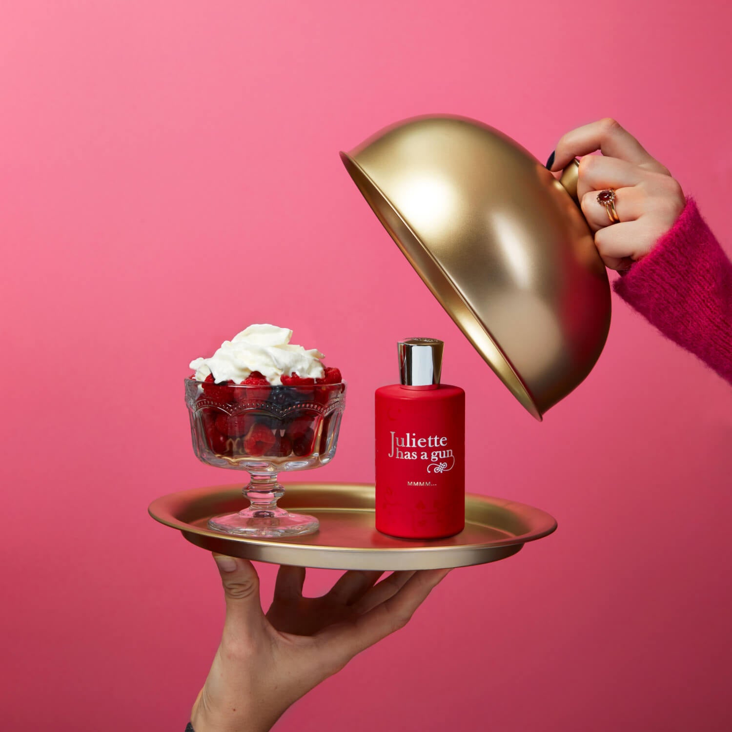 Juliette Has A Gun Mmmm… EDP smells of neroli and raspberry, with jasmine Sambac and tuberose heart, on a base of patchouli and sandalwood.