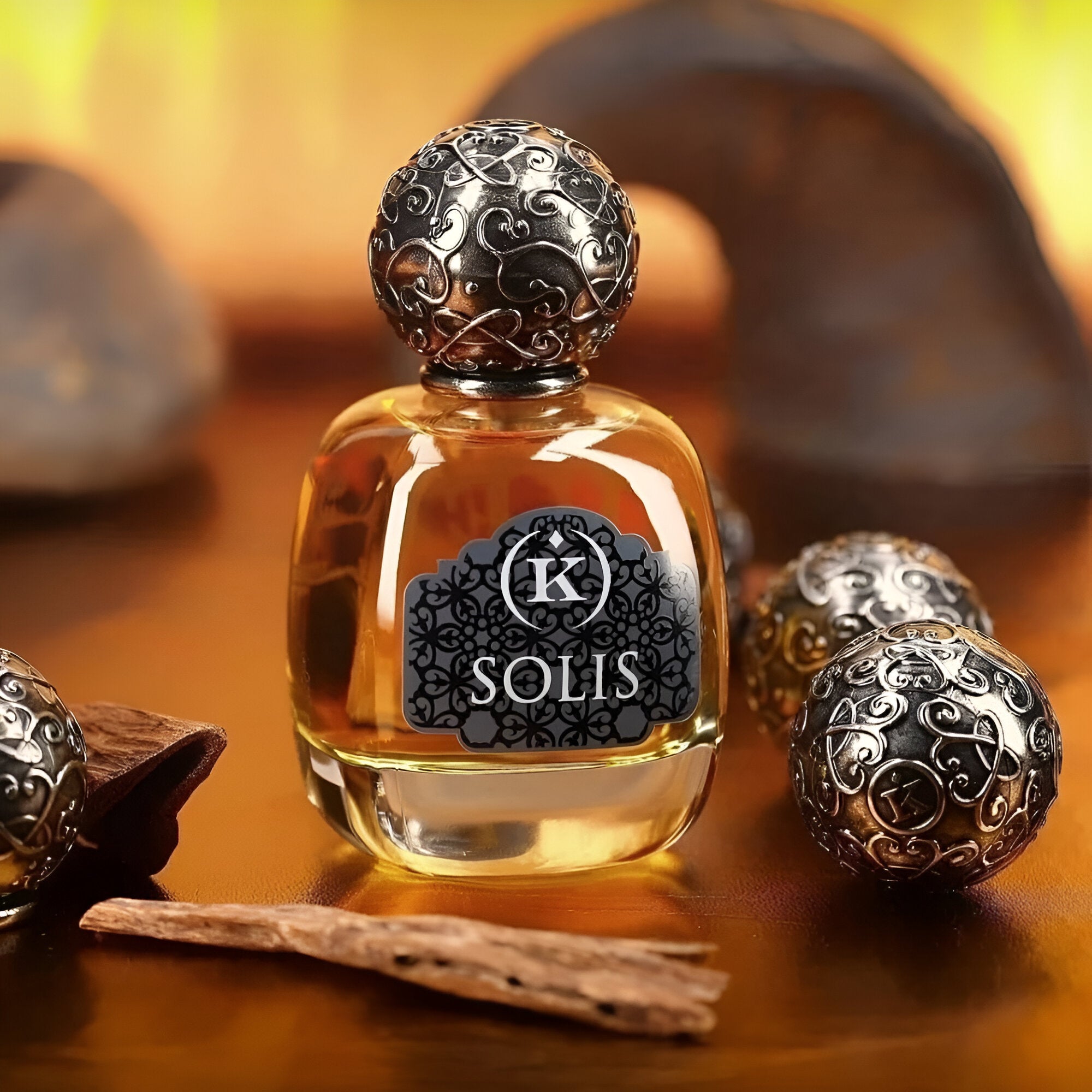Discover Kemi Blending Magic's Solis EDP: a unisex blend of oud, cedar, and caramel, inspired by alchemy for a truly captivating scent.