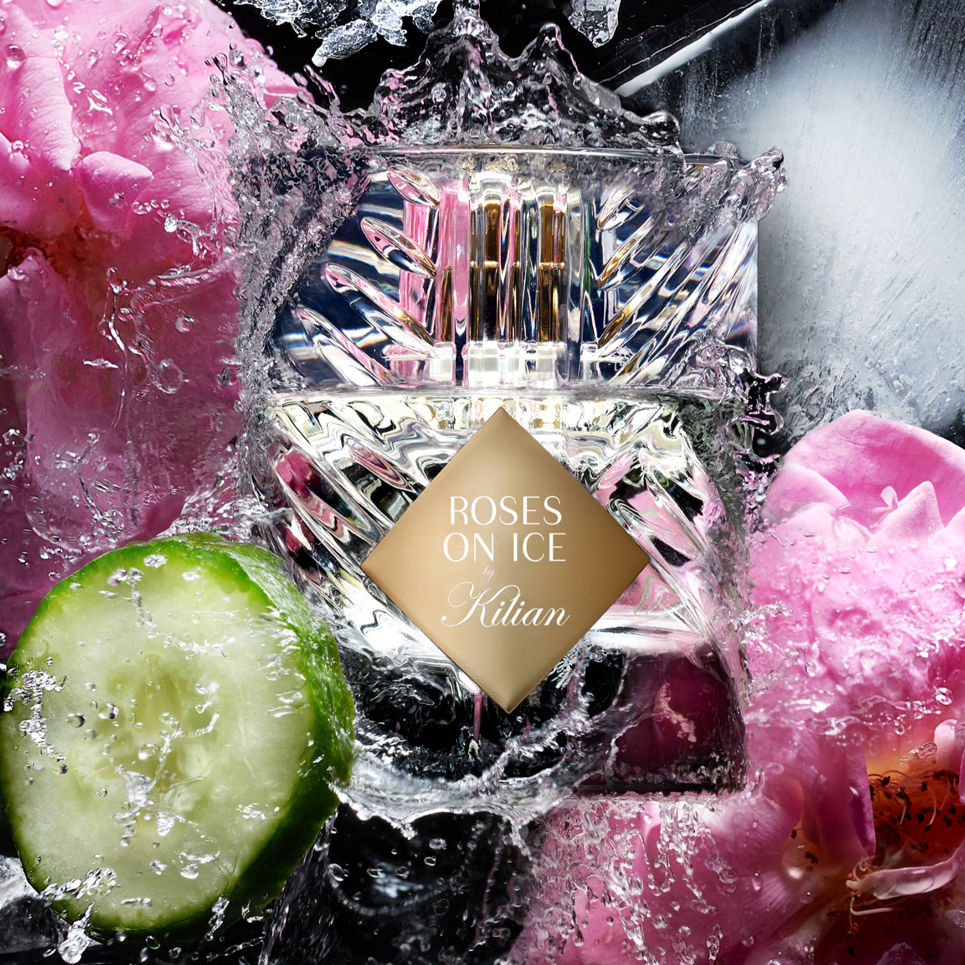 Experience a sensory cocktail with Kilian Roses On Ice EDP, embodying the elegance of a gin and tonic.