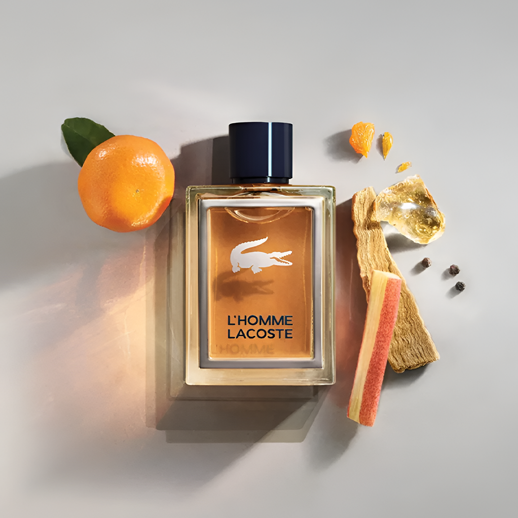 Lacoste L'Homme EDT smells of amber floral with vanilla, woody-nutty tones, touches of Mirabelle plum, pink pepper, bergamot, and hints of cinnamon.