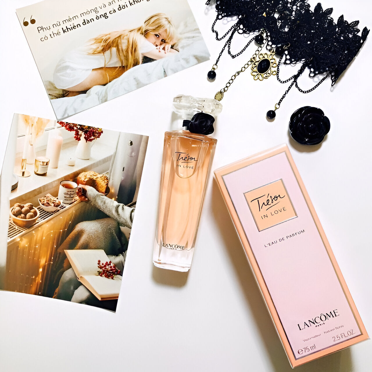 Lancome Tresor In Love perfume has a long-lasting, feminine scent with notes of nectarine and florals, perfect for a radiant and precious vibe.