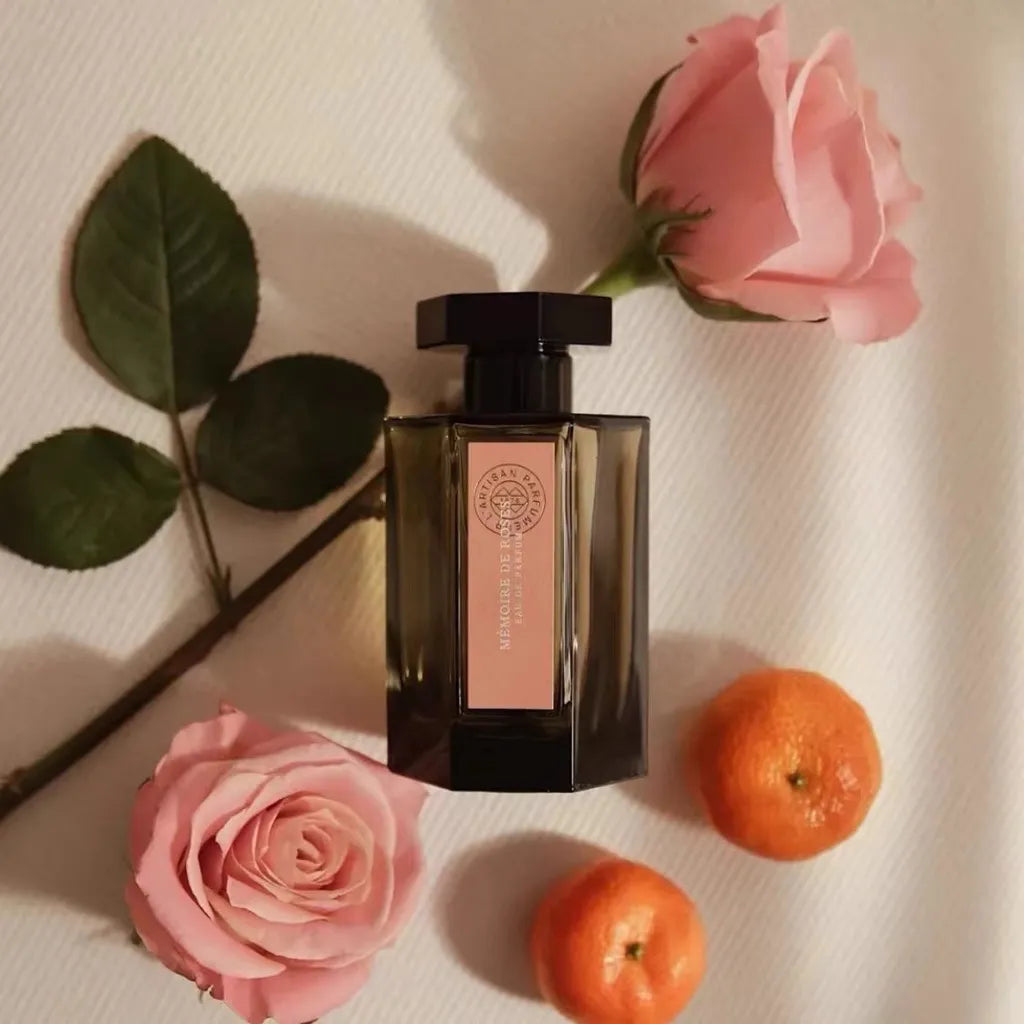 L'Artisan Parfumeur Memoire De Roses Gift Set smells of bright mandarin and orange blossom with honeyed rose warmth, evoking sun-warmed orange trees at dusk with soap and nourishing hand cream.
