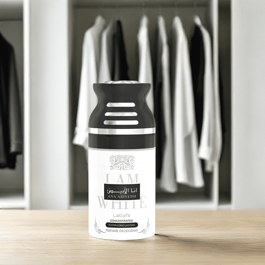 Elevate your presence with Lattafa's I Am White Deo: A luxurious, long-lasting fragrance blending white flowers, musk, and vanilla for all.