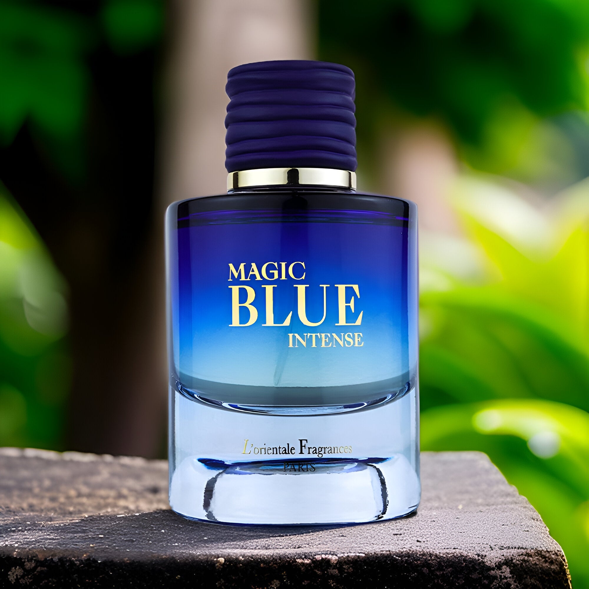 Discover L'Orientale Fragrance Magic Blue Intense: a captivating, long-lasting blend of exotic spices and florals, perfect for any occasion.