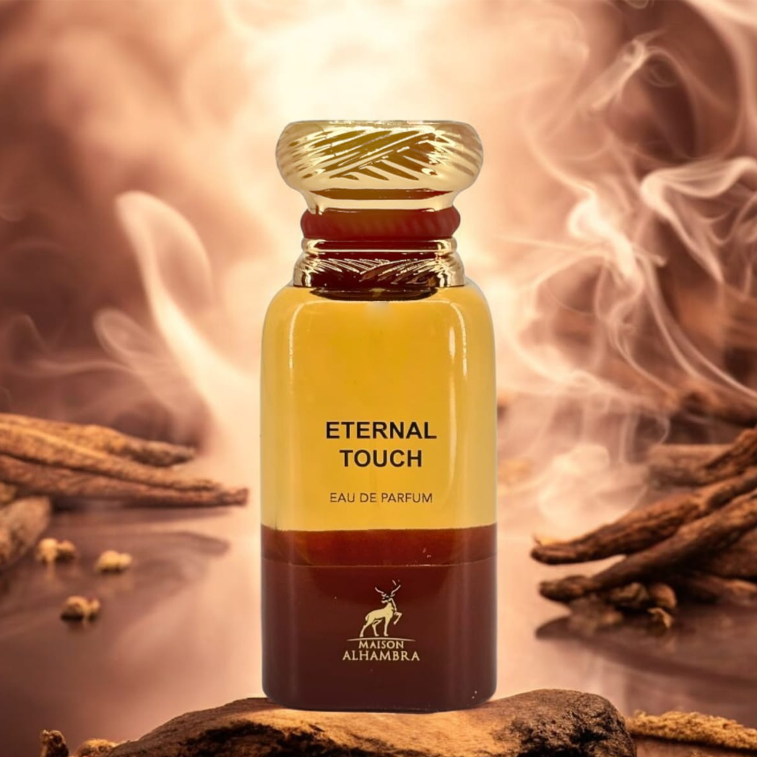 Maison Alhambra Eternal Touch EDP smells warm and inviting, blending sweet floral notes with hints of vanilla and a touch of fruity freshness, creating a comforting and elegant fragrance.