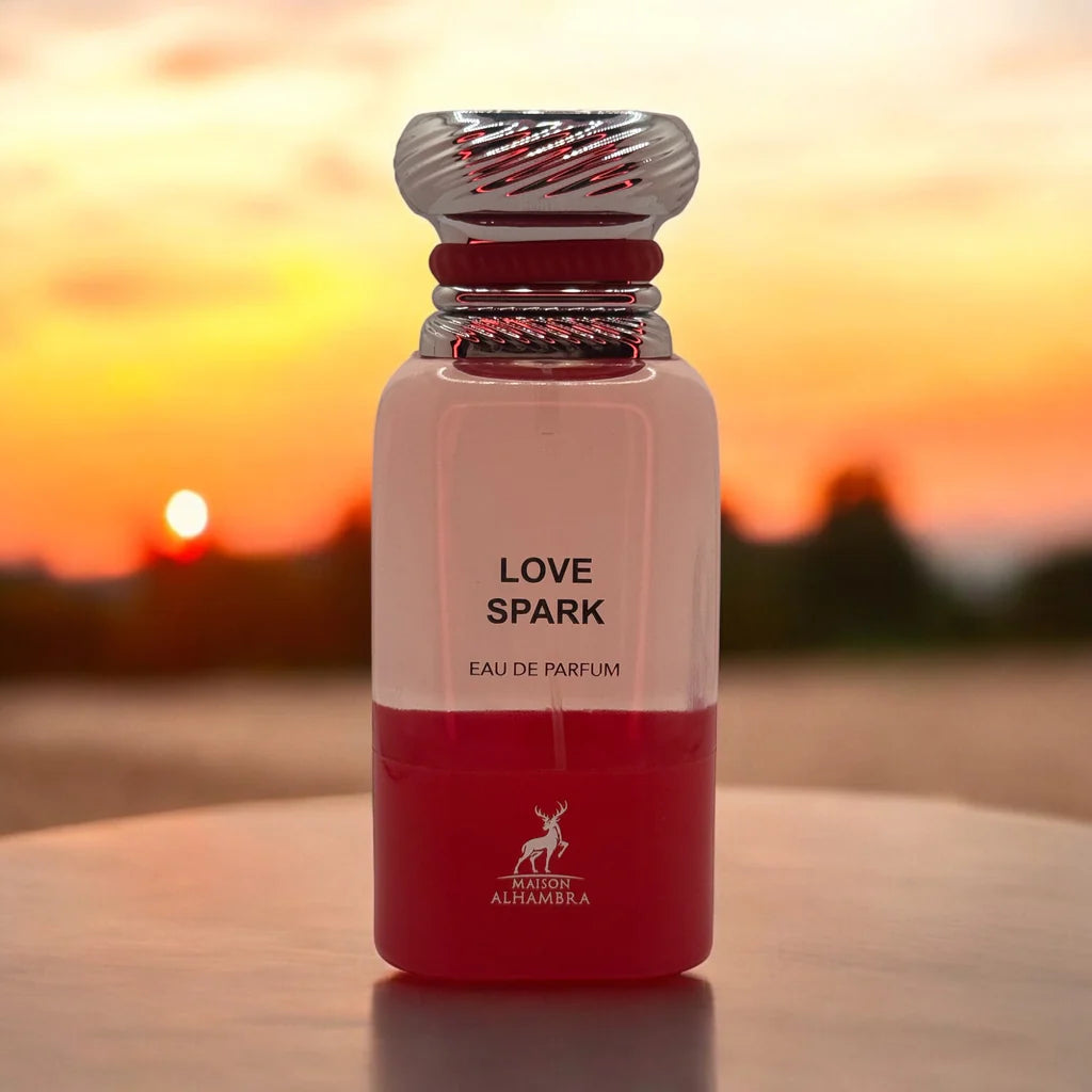 Maison Alhambra Love Spark EDP: a unisex fragrance blending cherry, jasmine, and musk, evoking passion and elegance.
