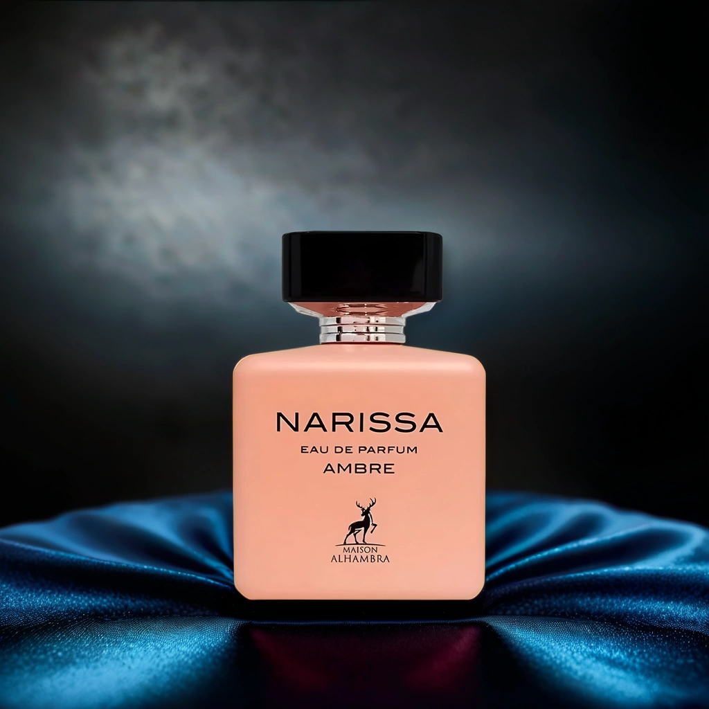 Maison Alhambra Narissa Ambre: a floral eau de parfum with white musk, floral notes, and a soapy freshness, perfect for everyday elegance.