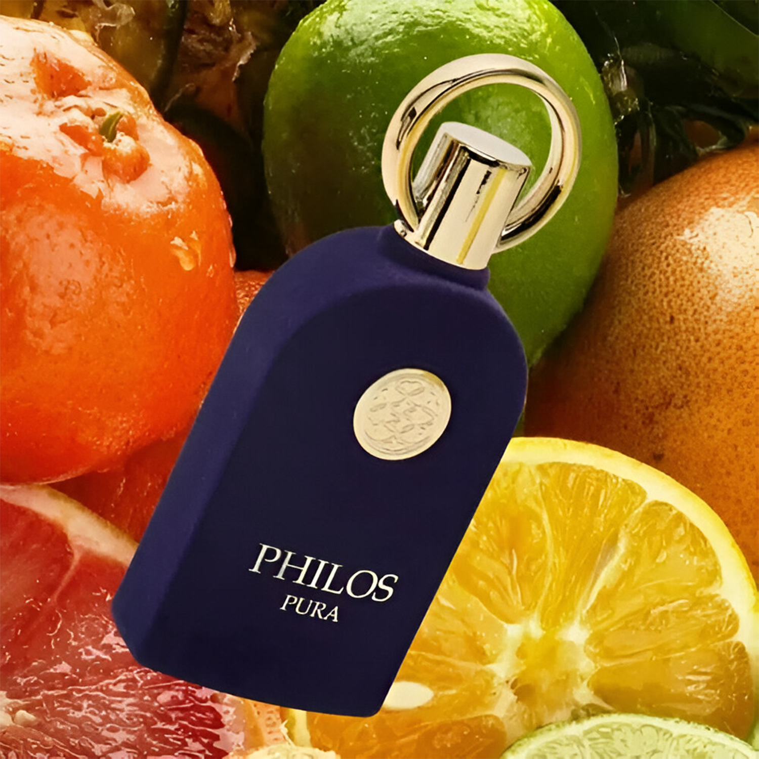 Philos Pura by Maison Alhambra is a long-lasting unisex fragrance with refreshing citrus and sweet Mediterranean fruit notes.