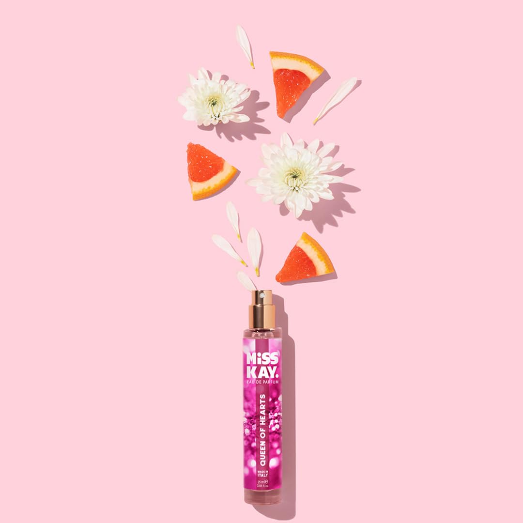Miss Kay Queen of Hearts EDP offers a warm, inspiring fragrance with floral and woody notes, perfect for confident, free spirits.