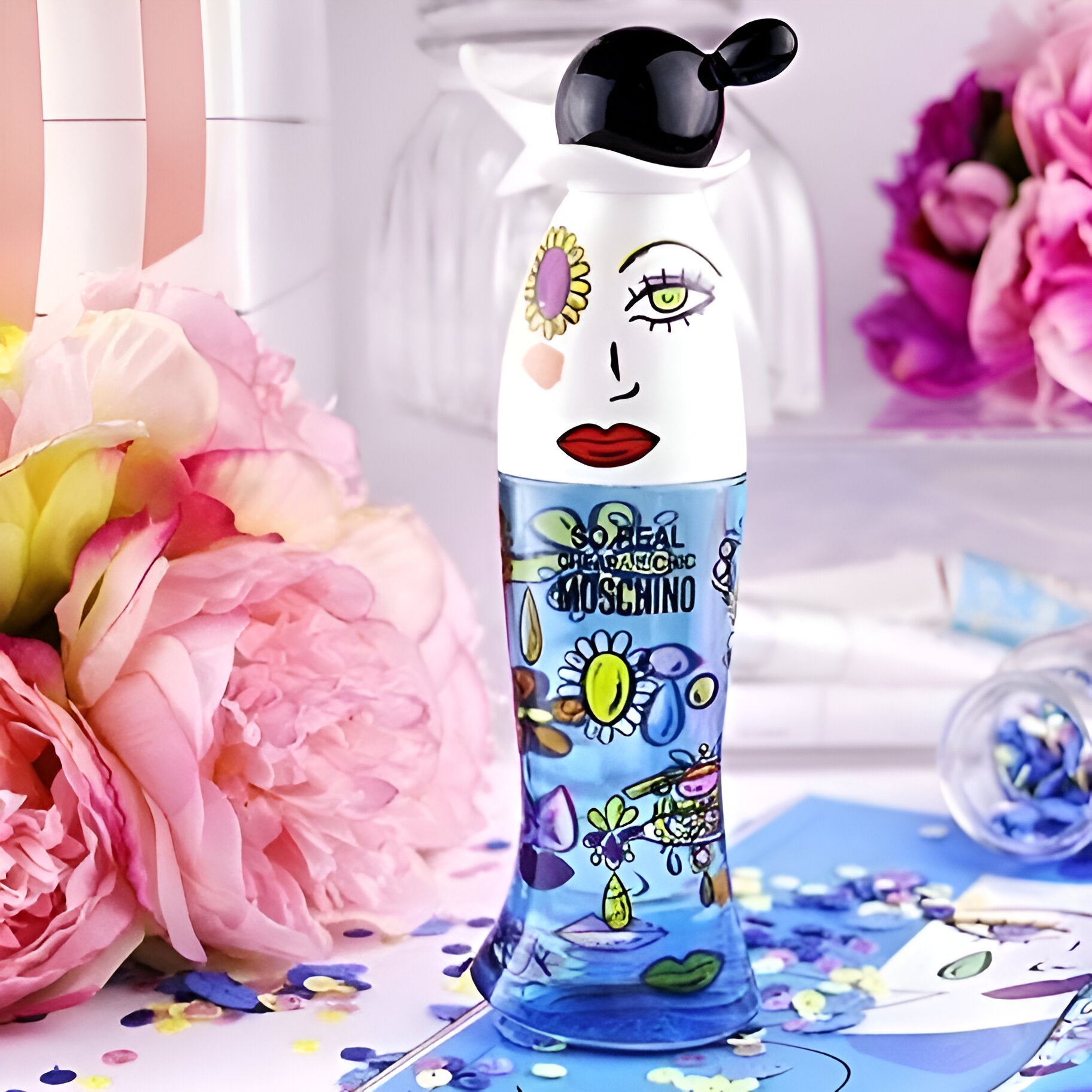 Moschino So Real Cheap & Chic EDT smells like a fun and whimsical blend of bright floral notes, woody undertones, and a playful essence inspired by Olive Oyl.