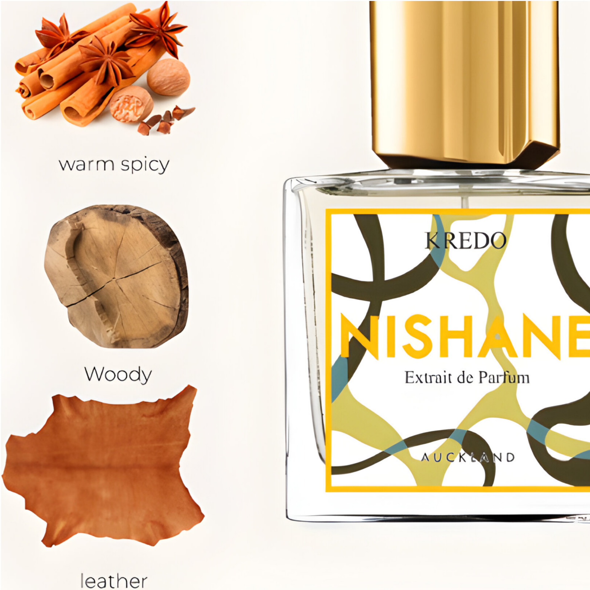Nishane Kredo Extrait De Parfum smells like a complex blend of rich spices, woods, and resins, creating a luxurious and profound scent.