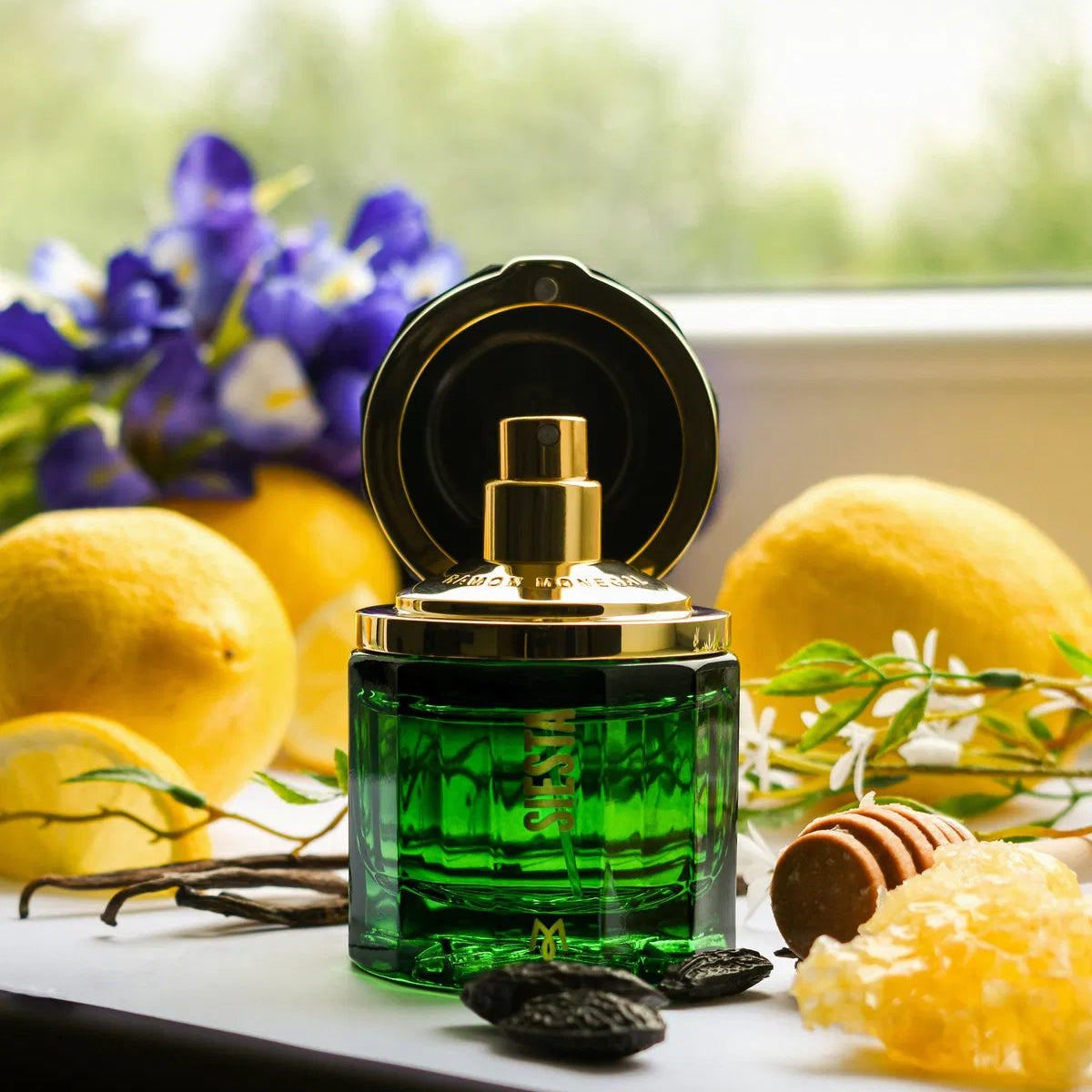Ramon Monegal Siesta smells like a sun-warmed Mediterranean escape: bright lemon and sweet honey over cedar, a floral heart of jasmine and iris with vetiver, and a cozy base of tonka, vanilla and soft musk for a relaxed, floral-woody finish.