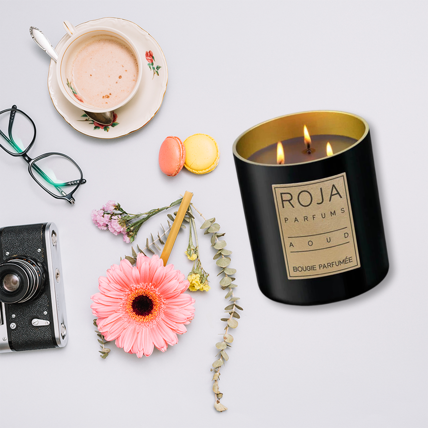 Experience luxury with the Roja Parfums Aoud Candle, blending Rose, Aoud, and Saffron for a captivating, exotic ambiance.