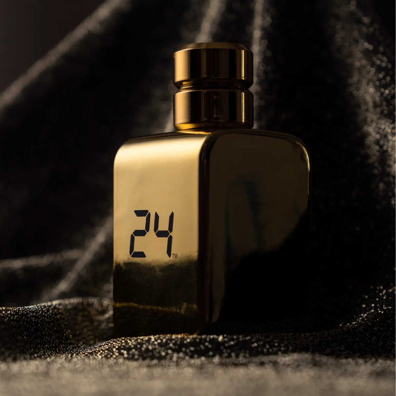 Scentstory 24 Gold EDT smells like a luxurious mix of rich woods and soft florals, featuring notes of agarwood, jasmine, and vanilla that together create an elegant and captivating scent perfect for any occasion.