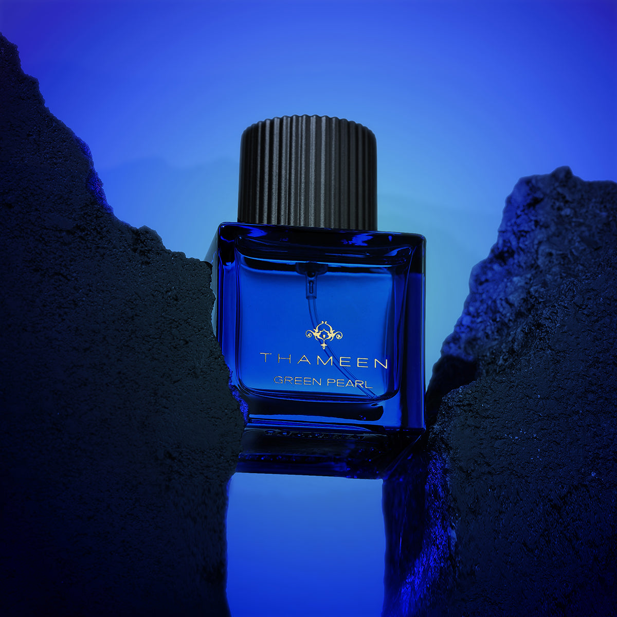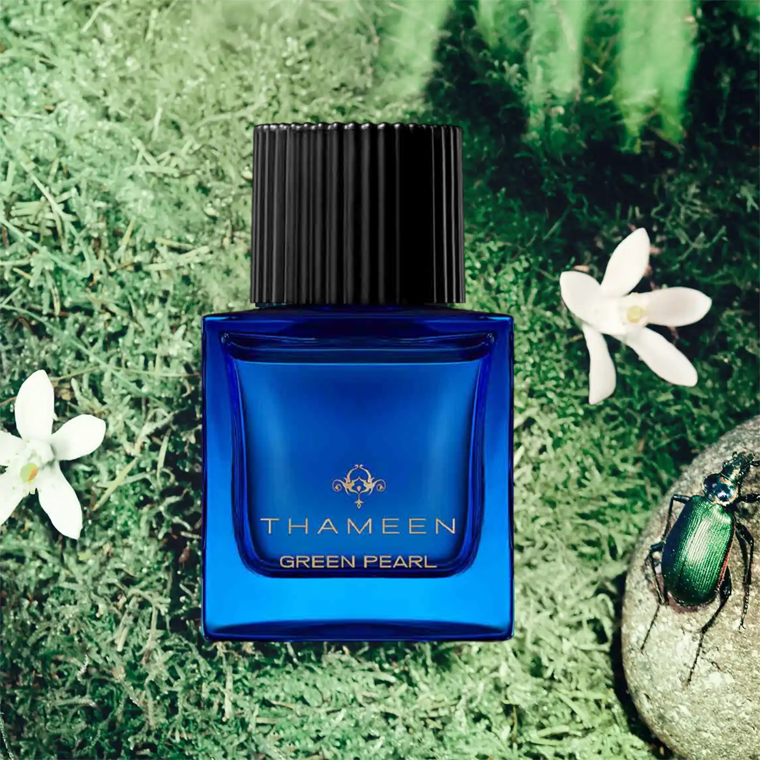 Thameen Green Pearl Extrait De Parfum smells bright and refreshing, with a mix of crisp apple, zesty citrus, and calming green florals that create a soothing and energizing experience.