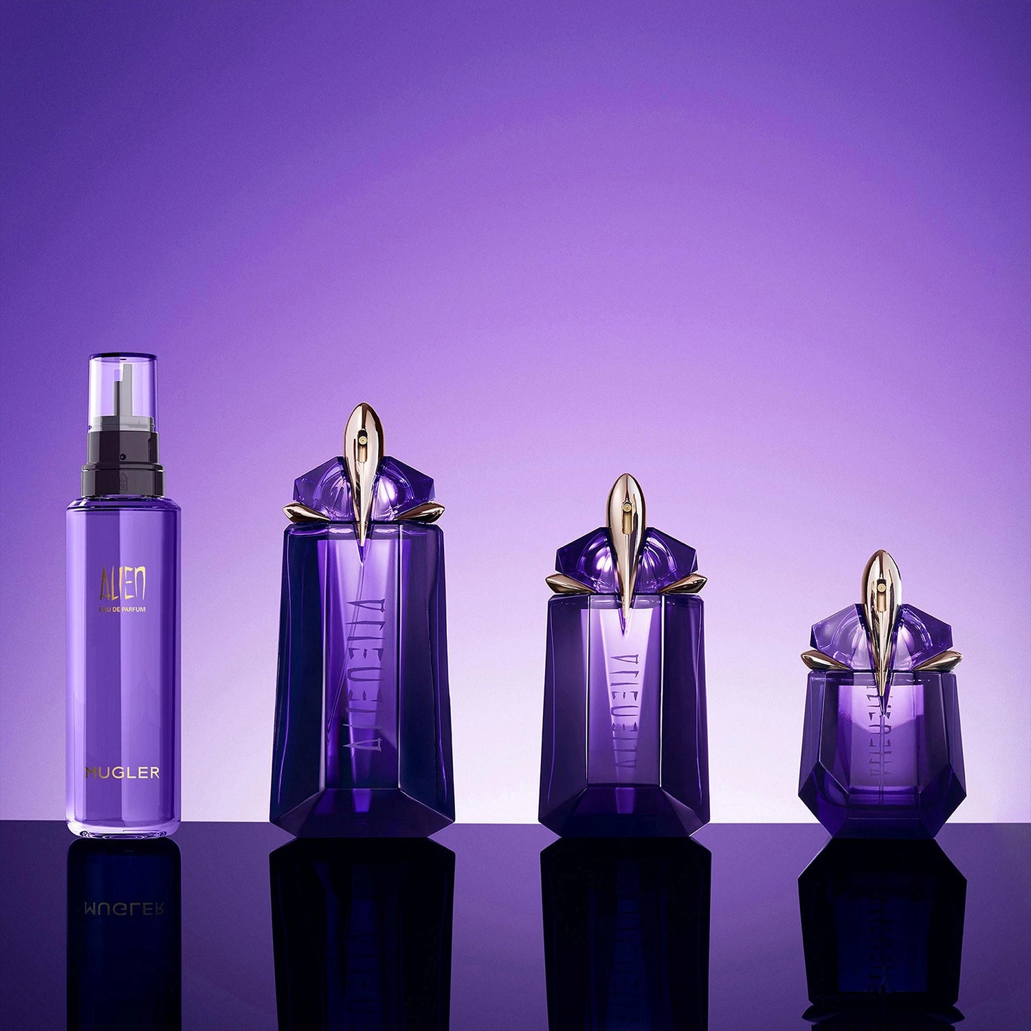 Alien is a floral-woody-amber fragrance that borders the realms of spirituality and sensuality.