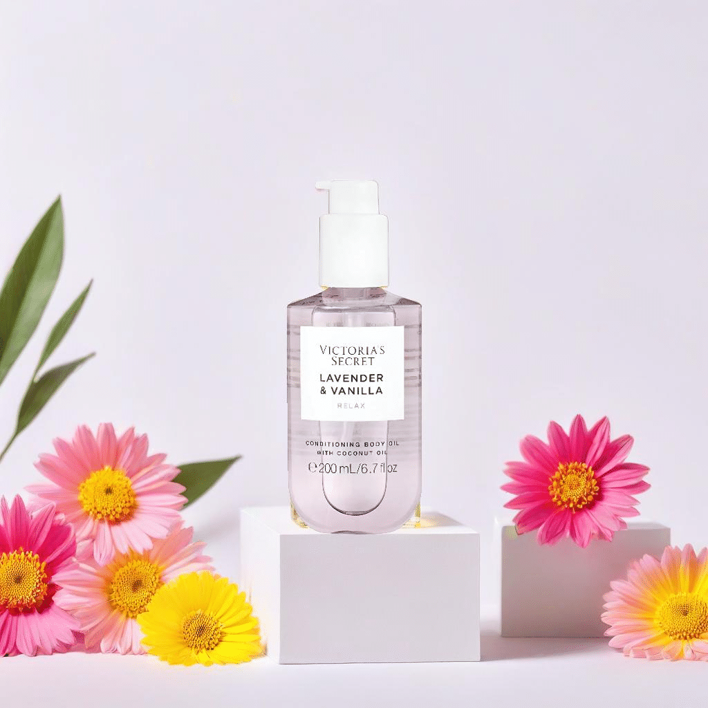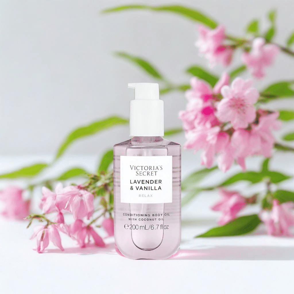 Immerse yourself in the serene bliss of Victoria's Secret Lavender & Vanilla Relax Conditioning Body Oil.