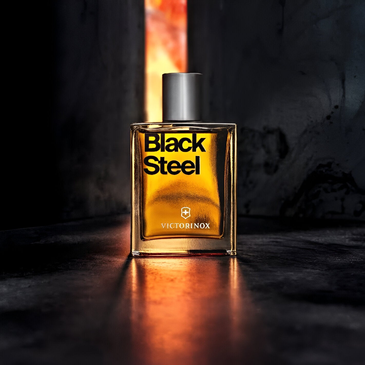 Victorinox Swiss Army Black Steel EDT is an embodiment of seduction and strength. Inspired by the artistry of steel melting in amber's glow, this fragrance captures warmth and vigor.