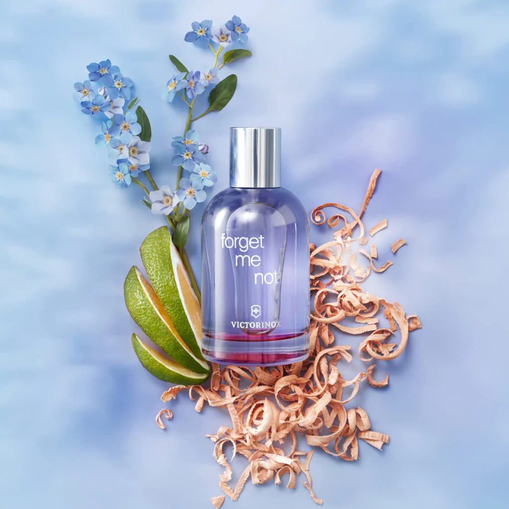 Victorinox Swiss Army Forget Me Not EDT smells like a fresh and uplifting blend of blooming flowers, bright bergamot, and warm wood, capturing the essence of nature’s beauty and celebrating femininity.