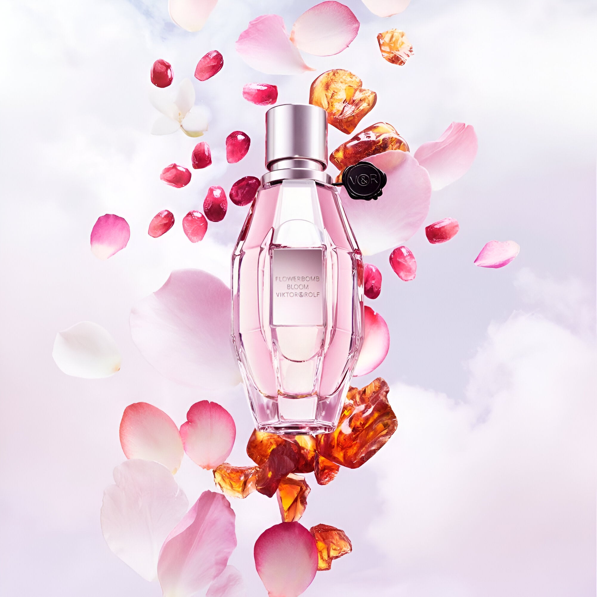 Viktor & Rolf Flowerbomb Bloom EDT has a fresh, fruity floral scent with notes of pomegranate, bergamot, and mandarin.